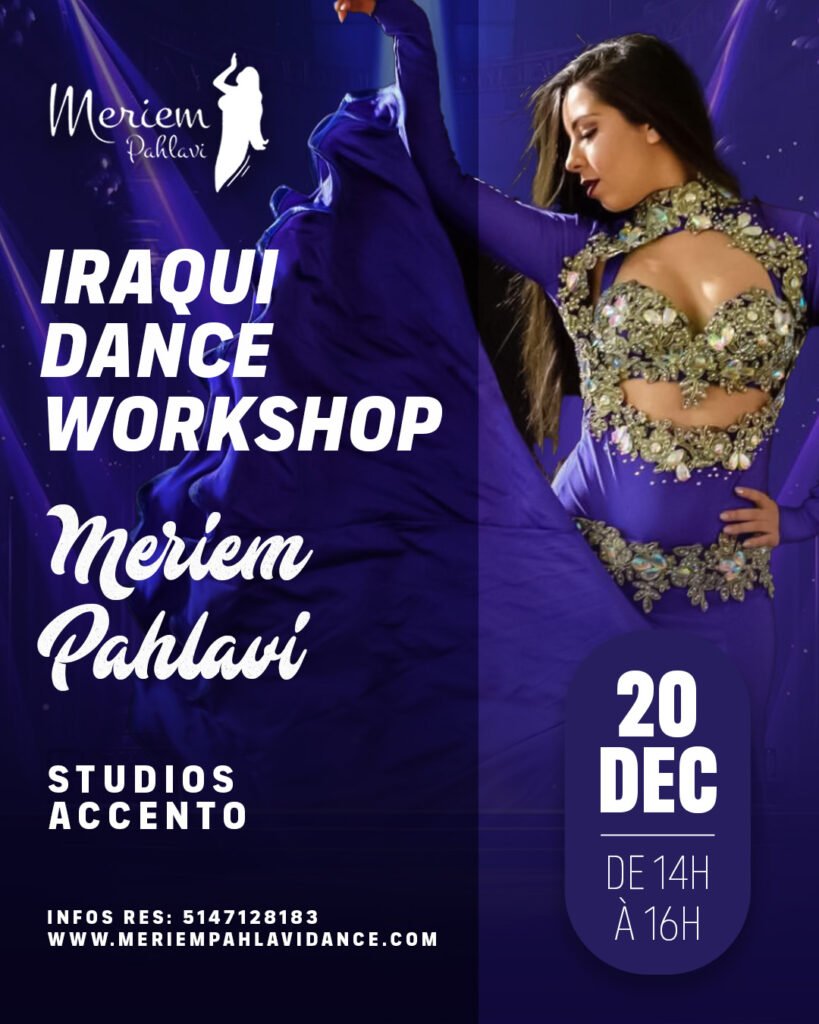 Plongez dans l’univers vibrant et expressif de la danse irakienne lors de ce workshop exclusif animé par Meriem Pahlavi. Ce stage intensif de deux heures est une immersion complète dans un style puissant, précis et profondément émotionnel, reconnu pour sa richesse rythmique, ses accents marqués et son énergie unique.