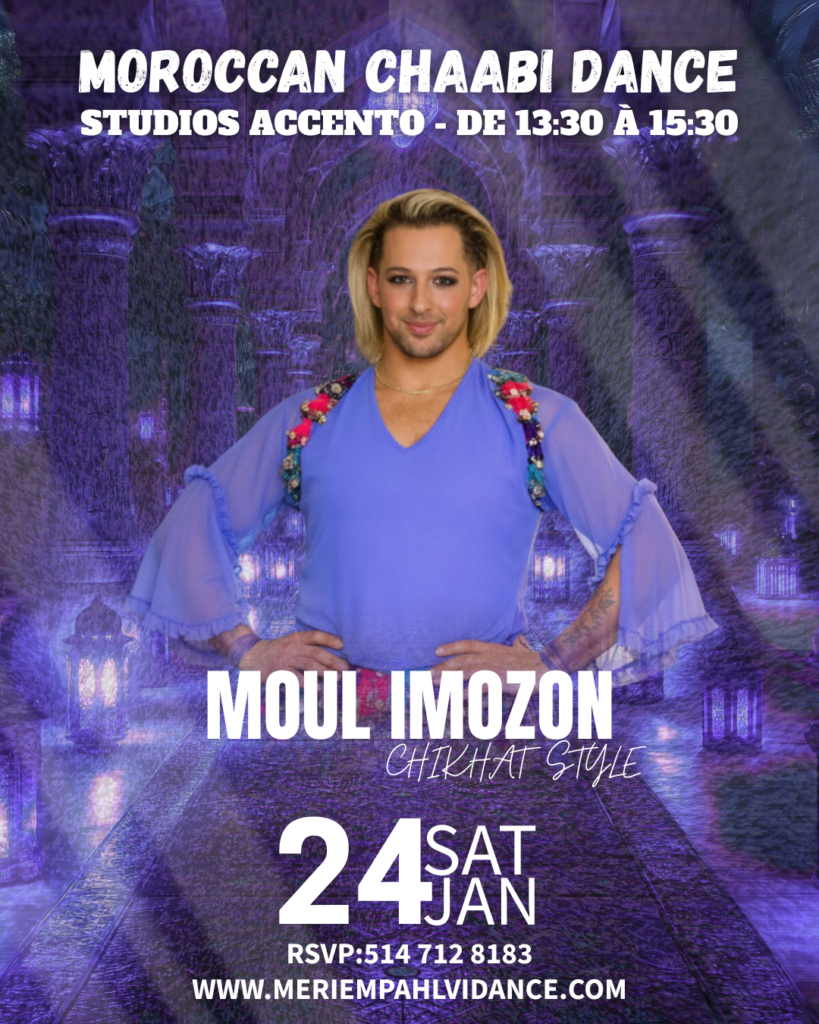 Un atelier énergique, authentique et surtout fun, dédié au Shikhat style, l’âme du Chaabi marocain, transmis par Moul Imozon dans une ambiance libre, festive et positive.